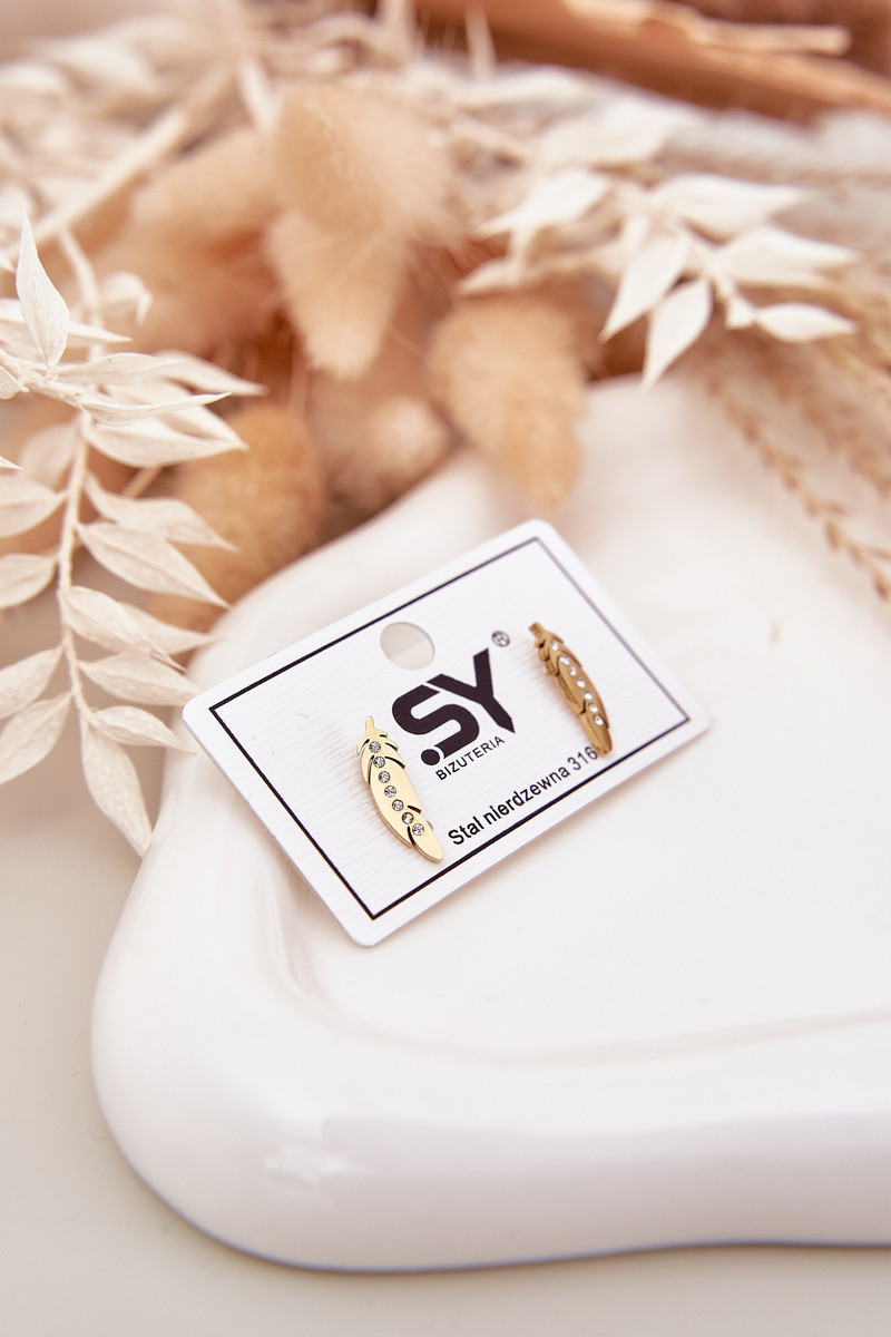 Com detalhes estilosos Folhas com olhos brilhantes de aço inoxidável dourados