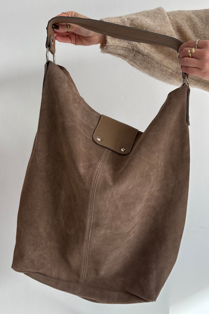 Grande bolsa de camurça sintética areia-escura Hanelle