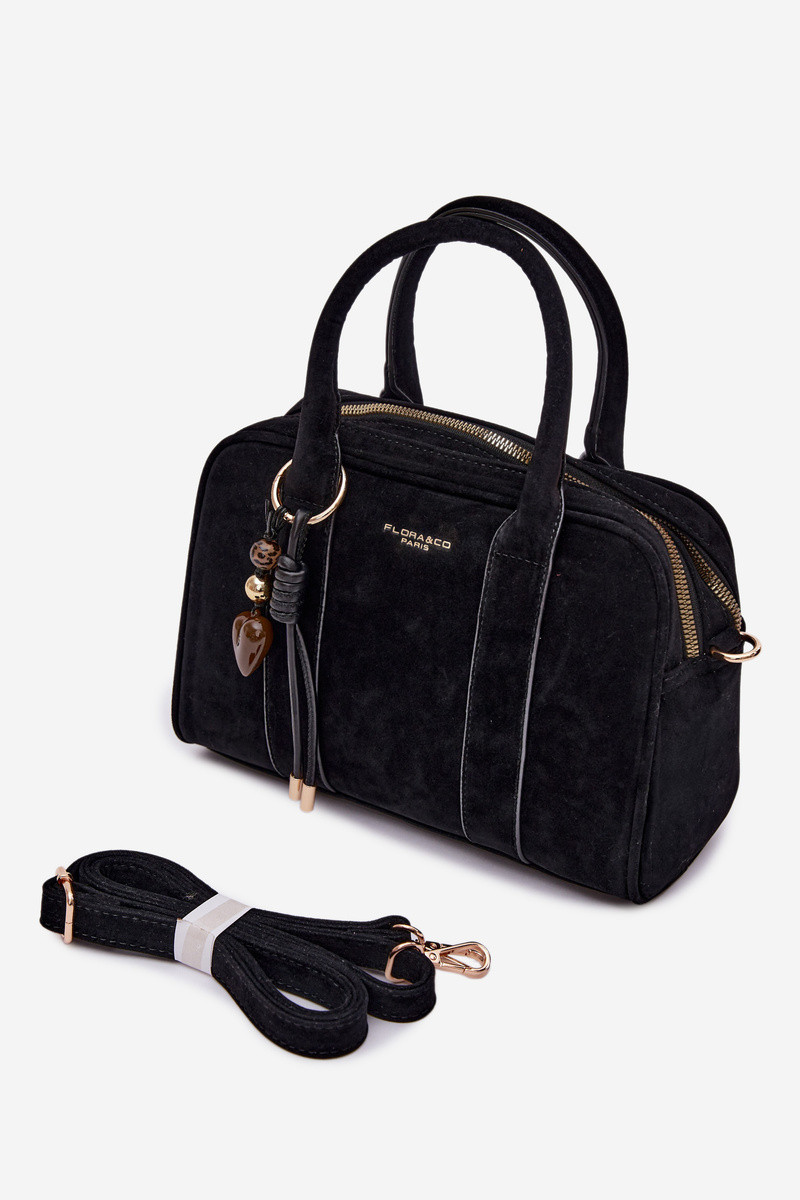 Bolsa tipo mala de camurça sintética com chaveiros preta Sorielle
