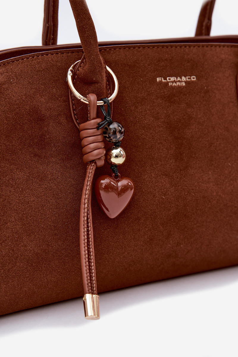 Bolsa com pingente e fechos de camurça sintética na cor marrom Violette