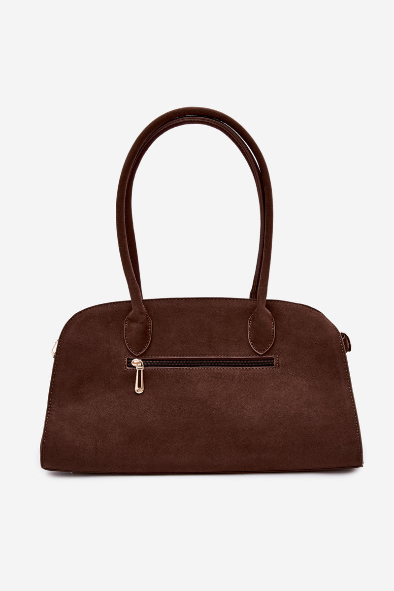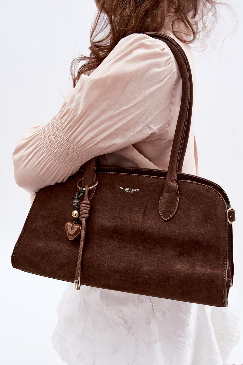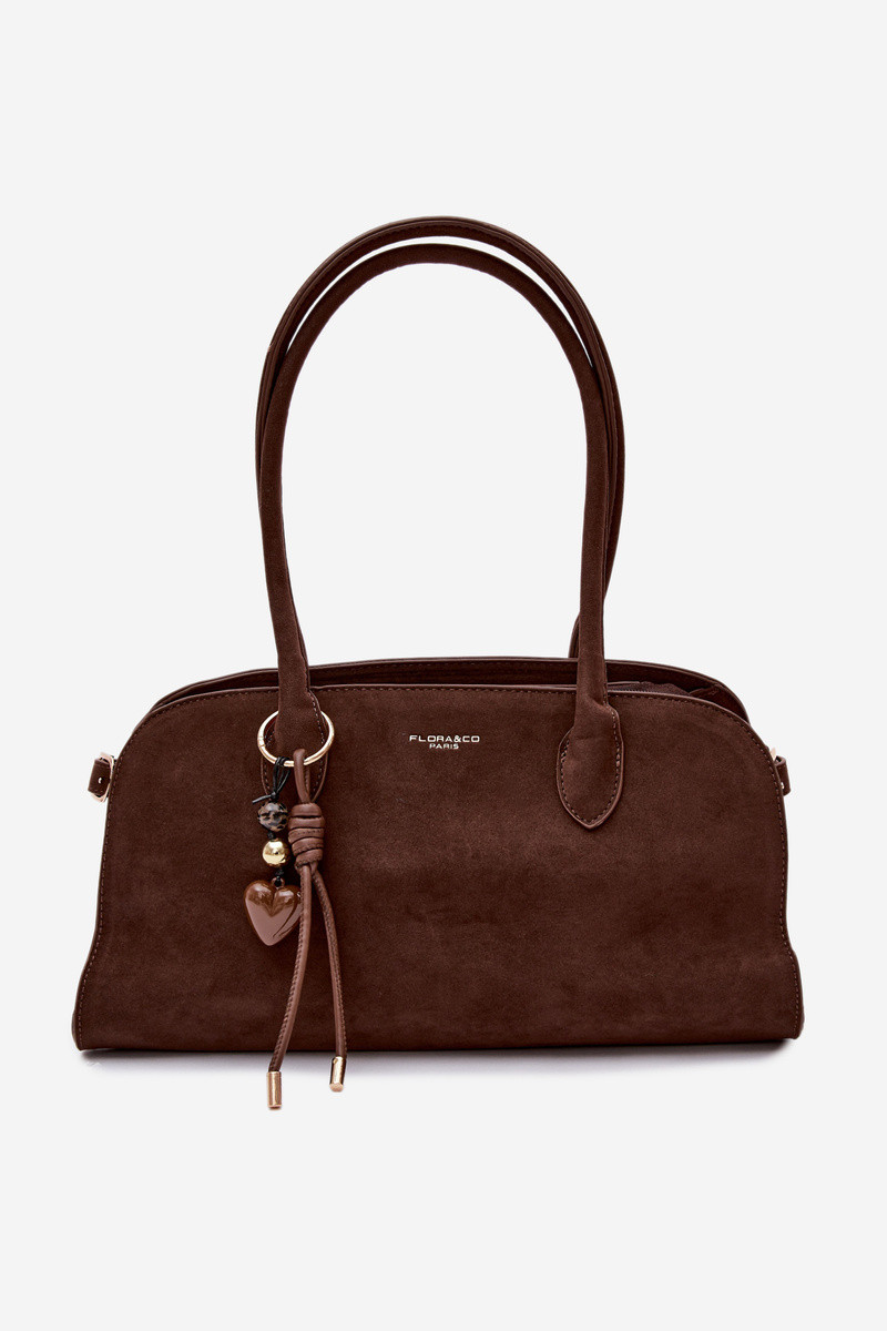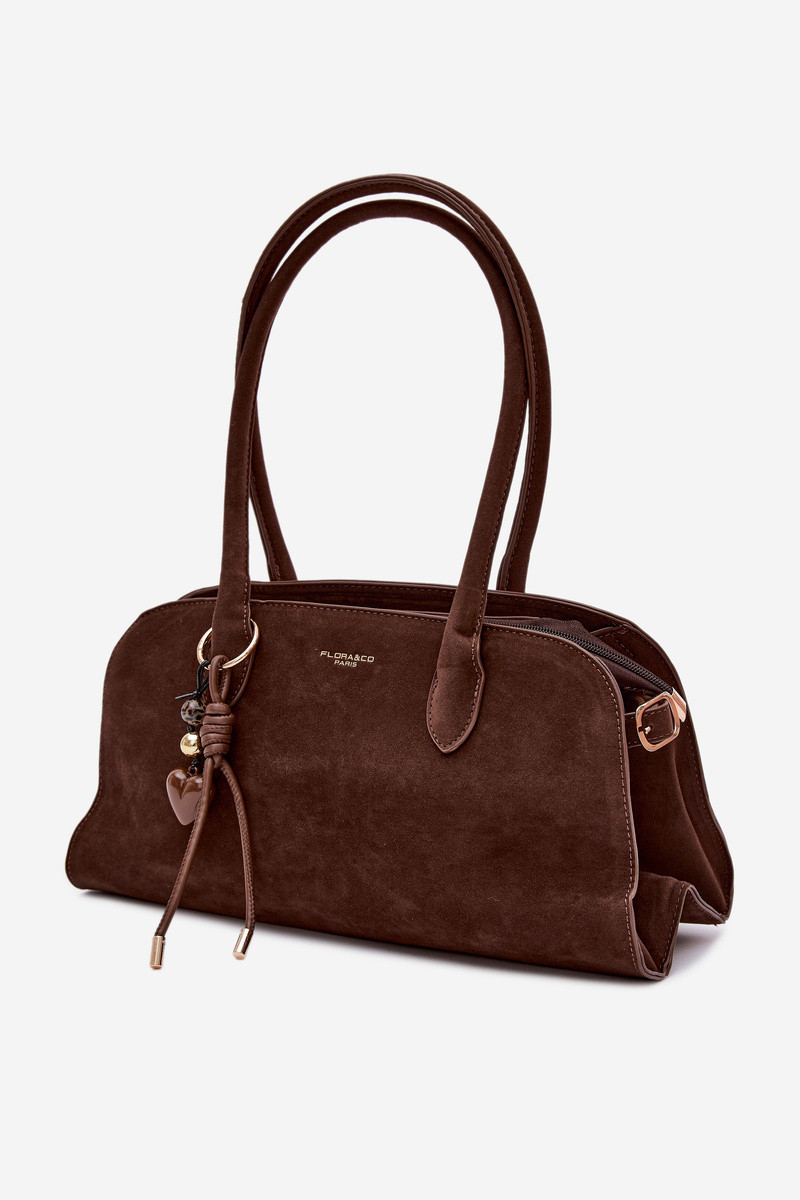 Bolsa com pingente e fechos de camurça sintética na cor chocolate Violette