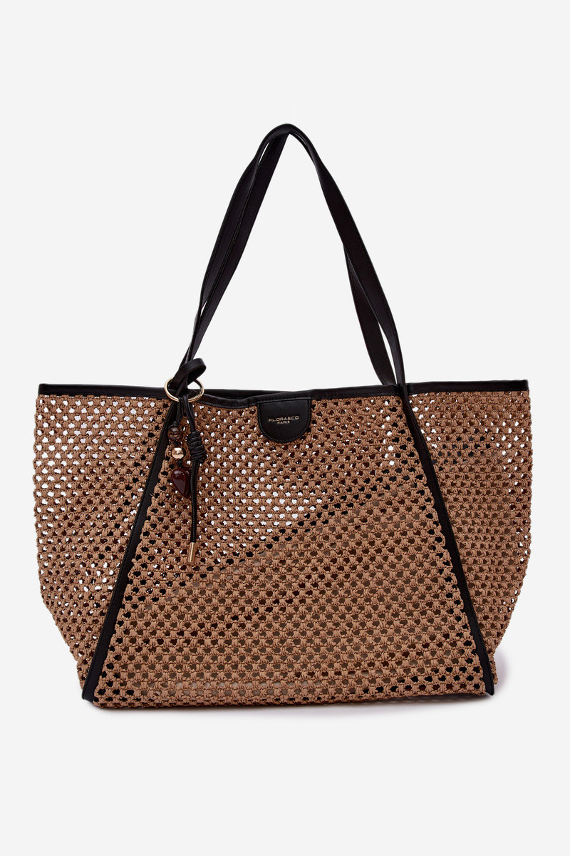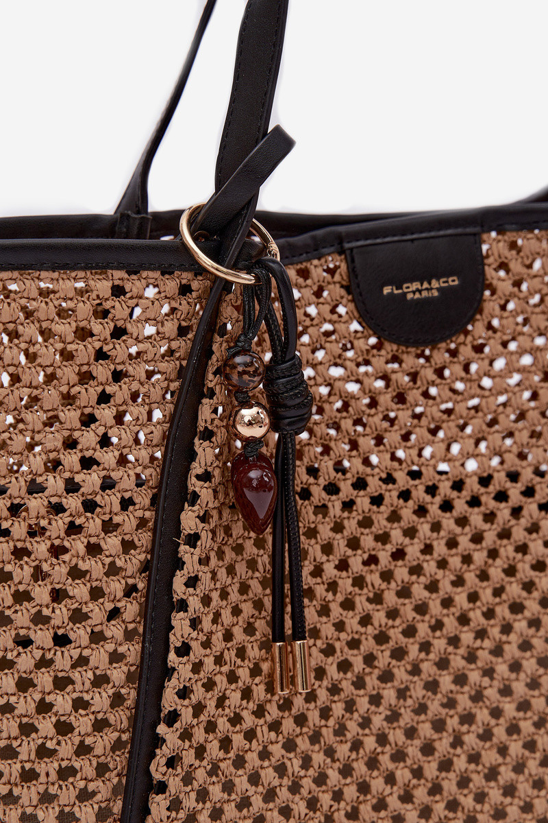 Bolsa de compras trançada grande na cor marrom brilhante Mella