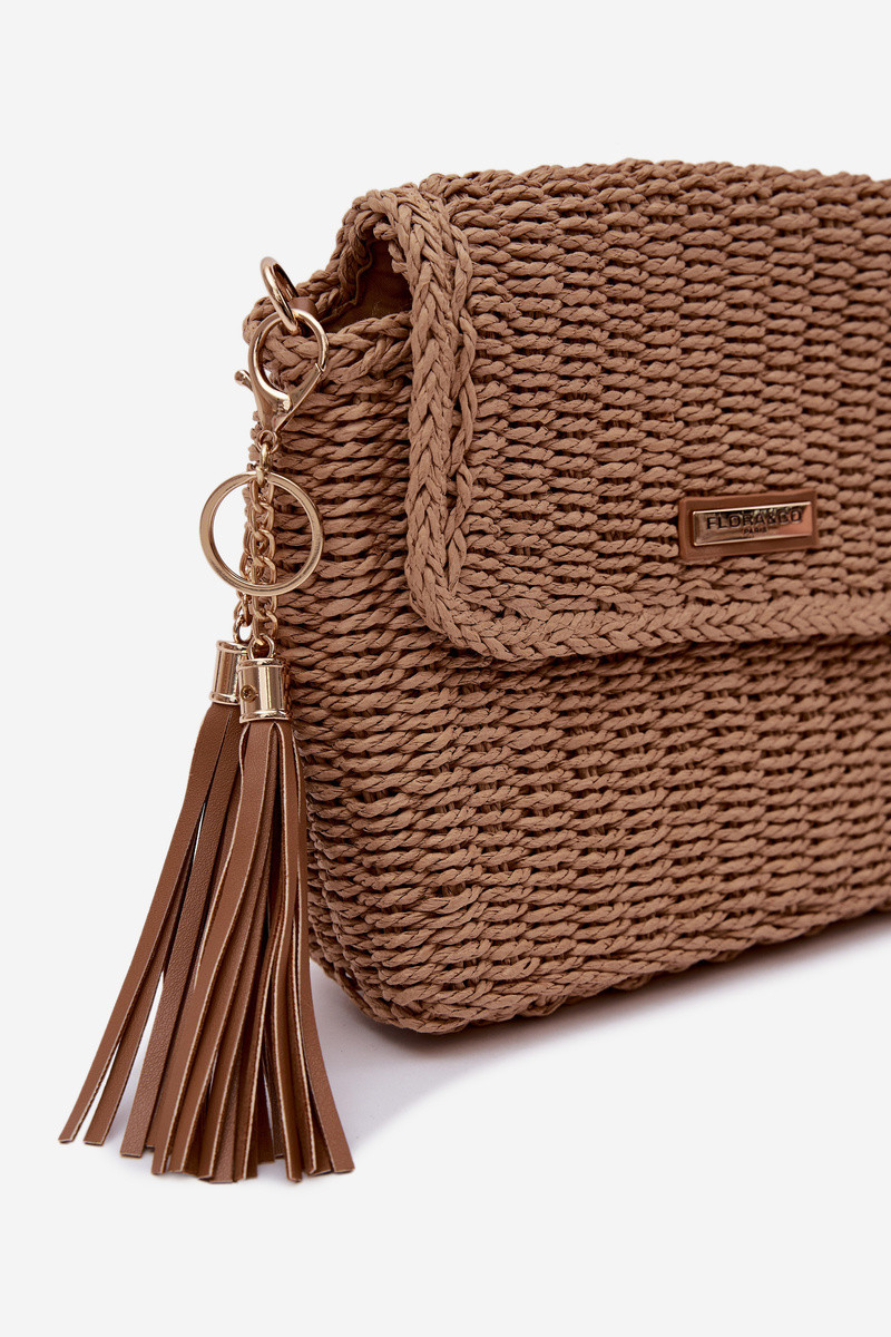 Bolsa pequena tipo carteiro com elementos de renda na cor marrom Tamara