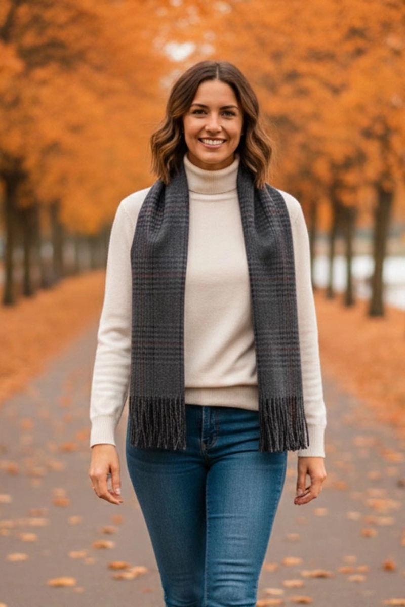 Cachecol feminino cinza xadrez Pirouet
