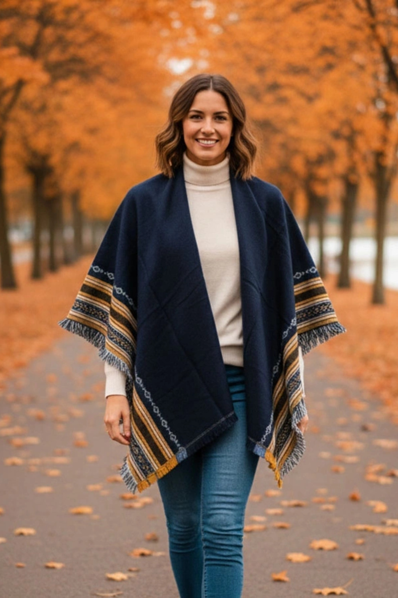 Cachecol azul marinho com decoração Rio