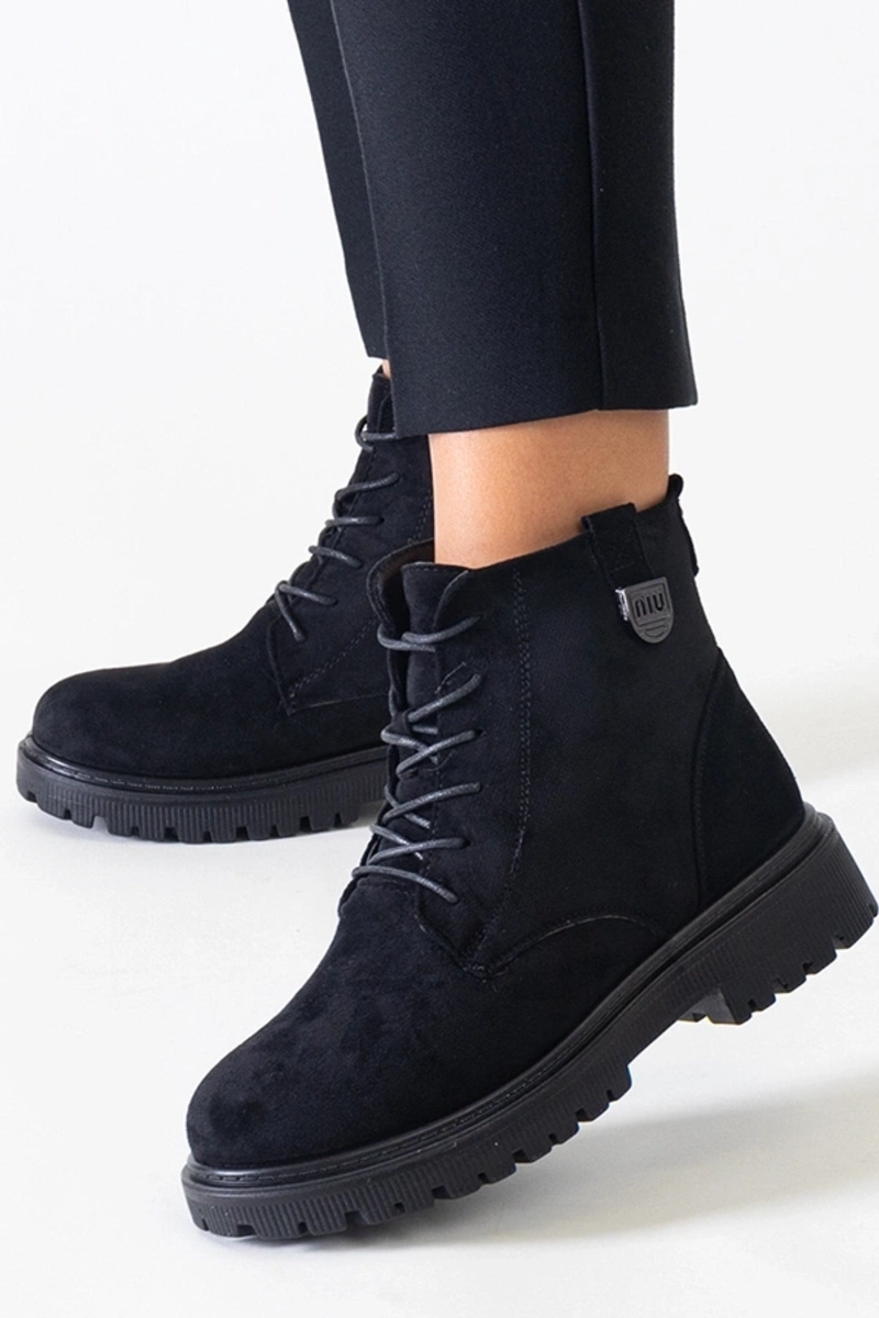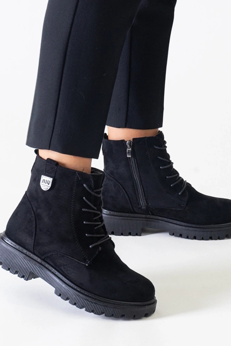 Botas de trabalho pretas de camurça sintética Leonora na plataforma
