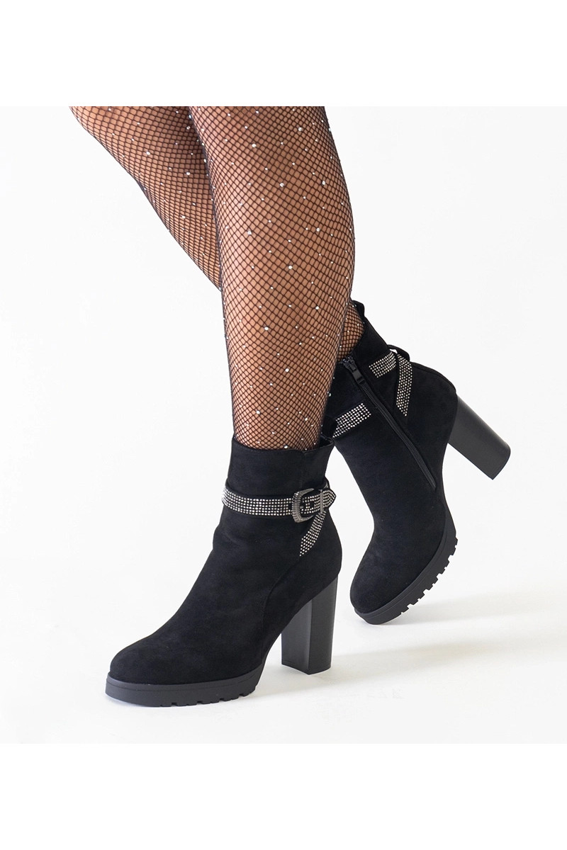 Botins pretos com zircões, camurça ecológica Shaliba