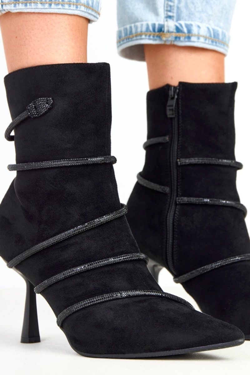 Botins pretos com salto decorados com zircônias Nethe