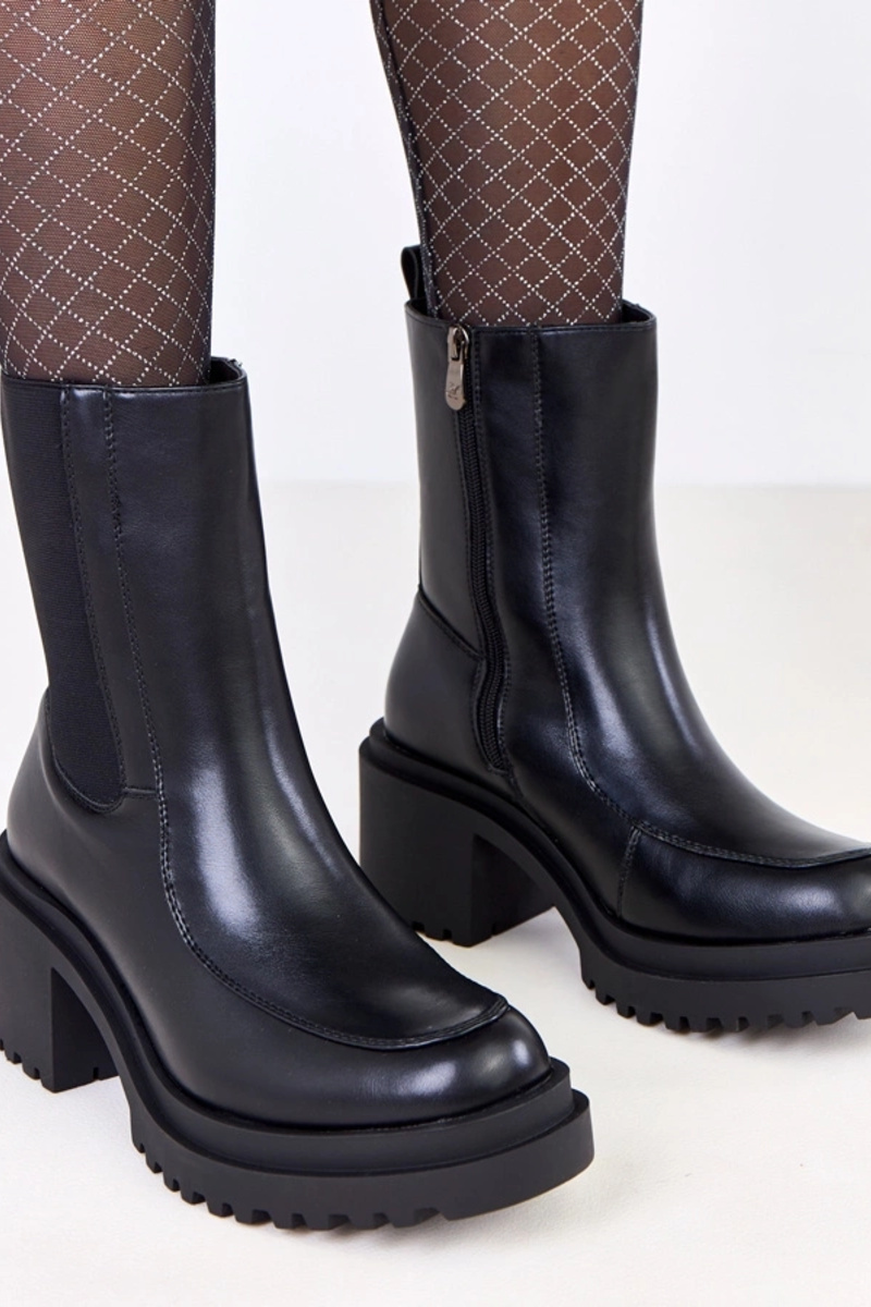 Czarne botki na słupku z elastyczną wstawką Jarley