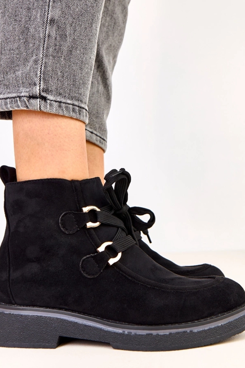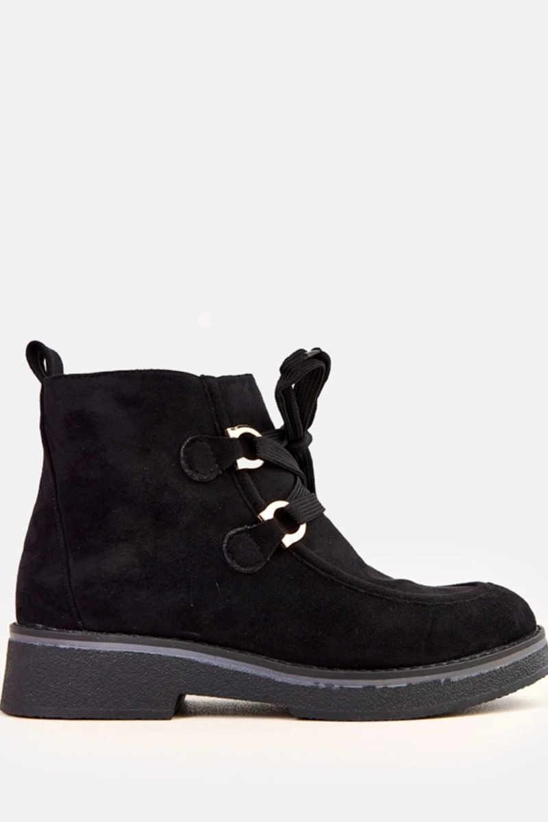 Botas de cano curto quentes pretas com cadarços decorativos, Katrins