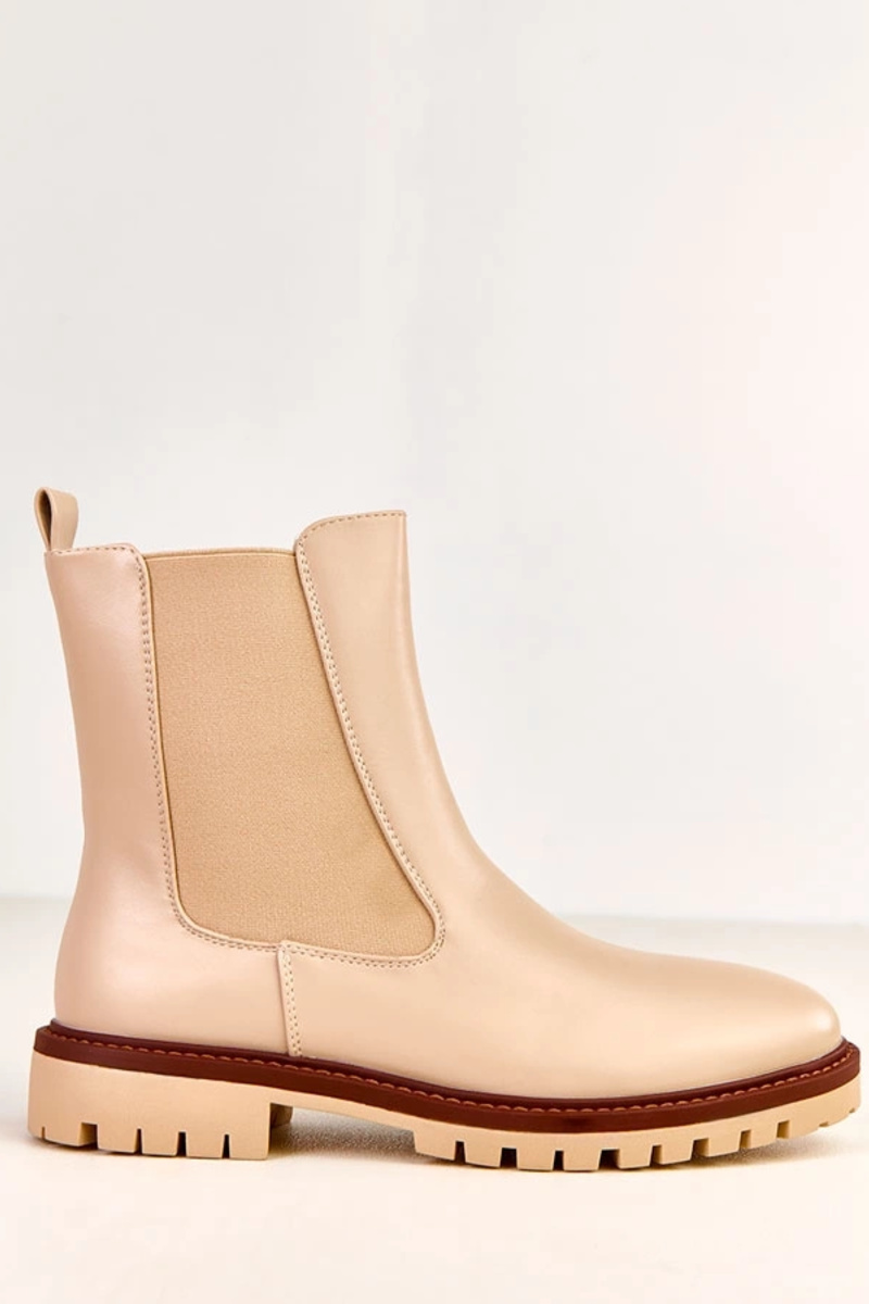 Botins bege com solado plano e detalhe elástico Terrami