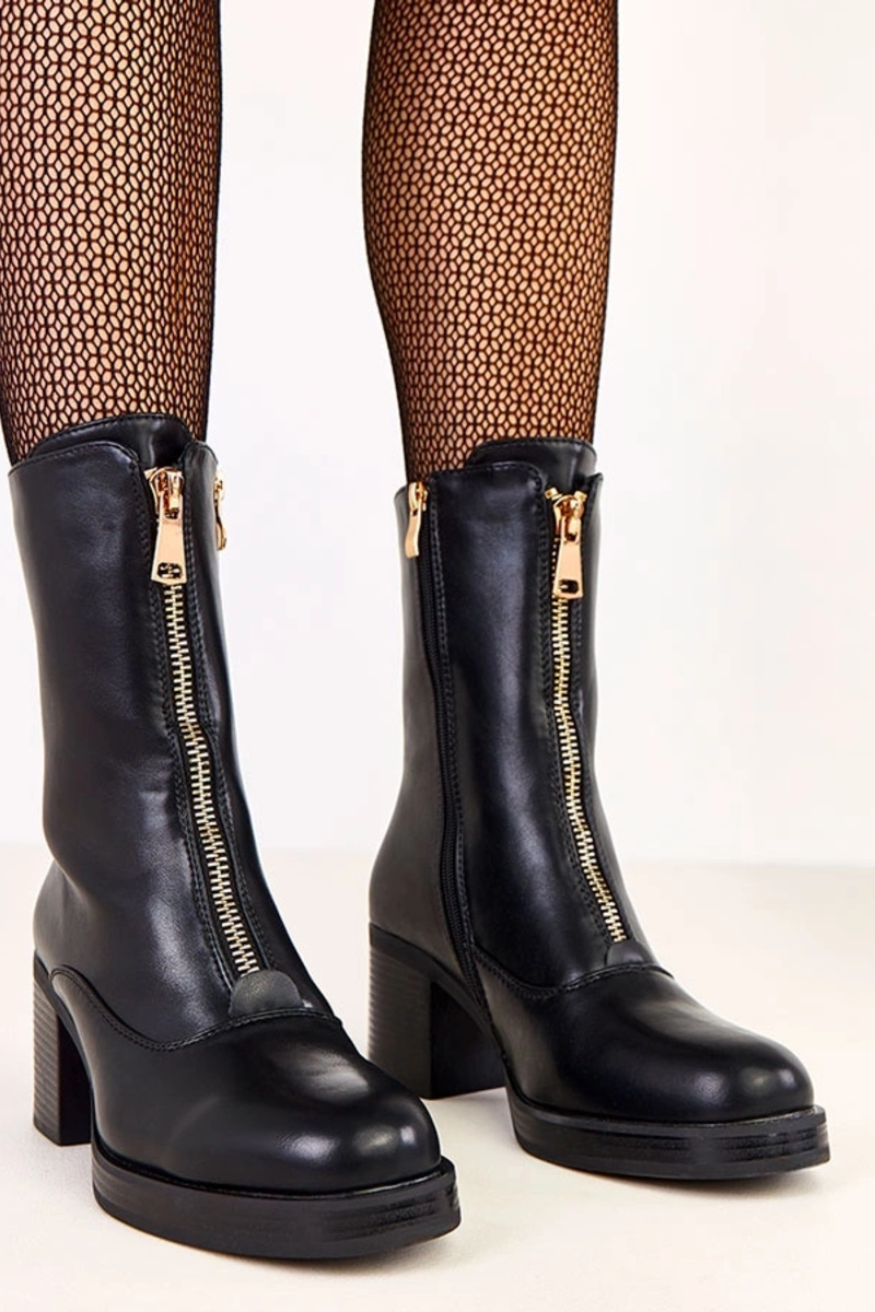 Botins de salto alto pretos com zíper decorativo na frente Erafir