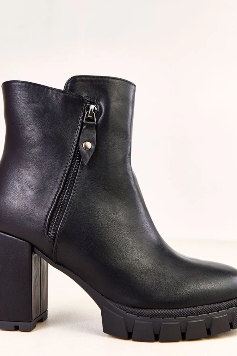 Botins pretos com salto bloco e zíper decorativo Kolles