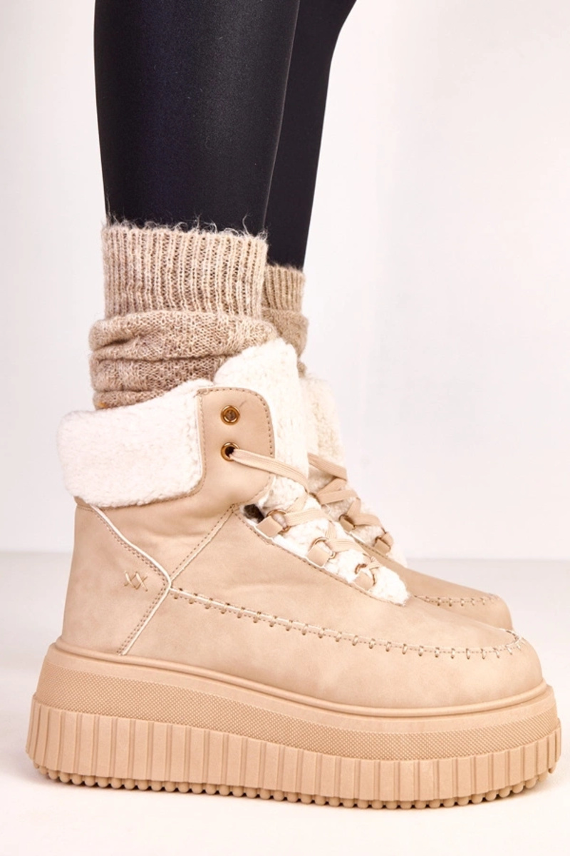 Um modelo atraente botas estilo coParaboy FemininoHabilitadoturalnego de camurçau bege...