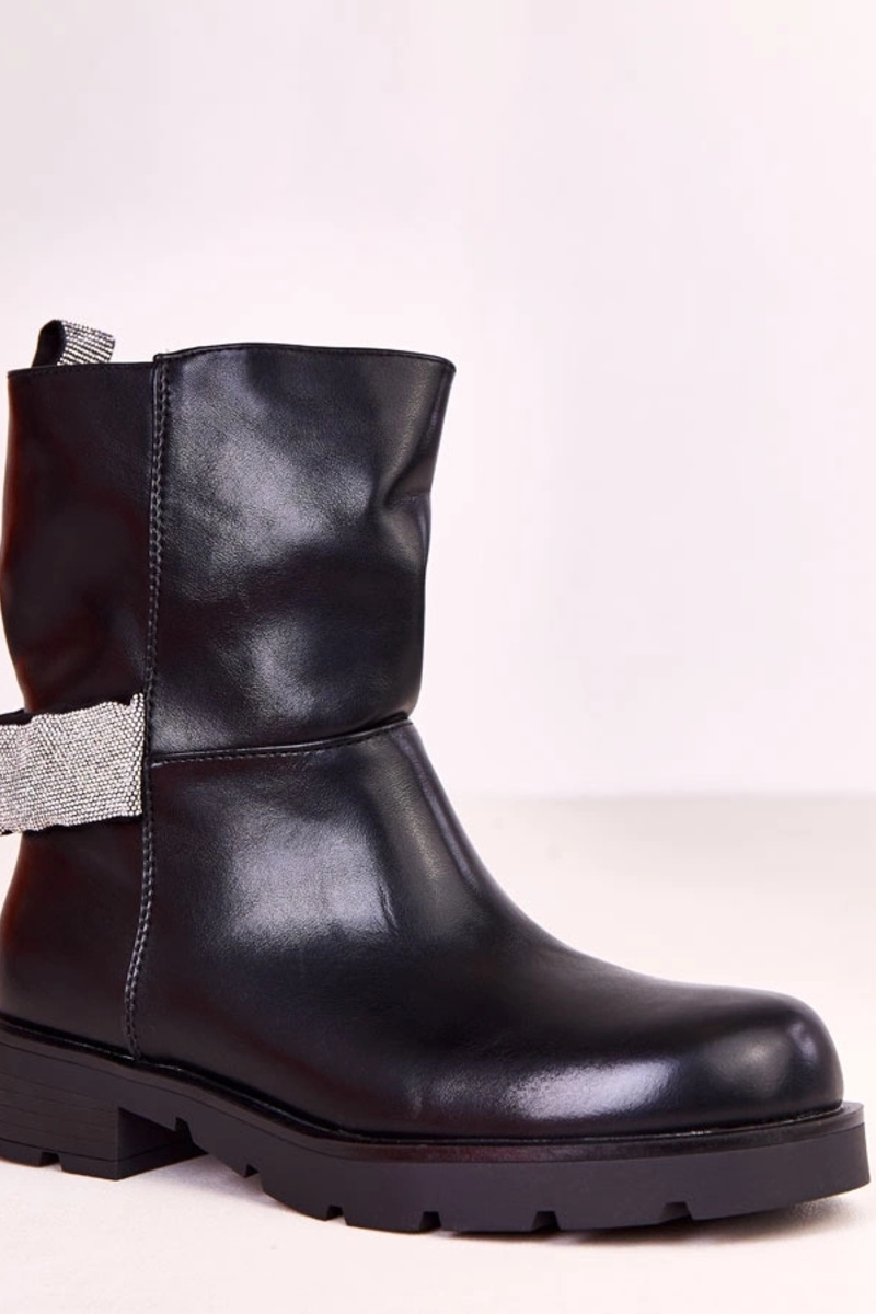 Botins femininos pretos com detalhes de zircônios Elisana