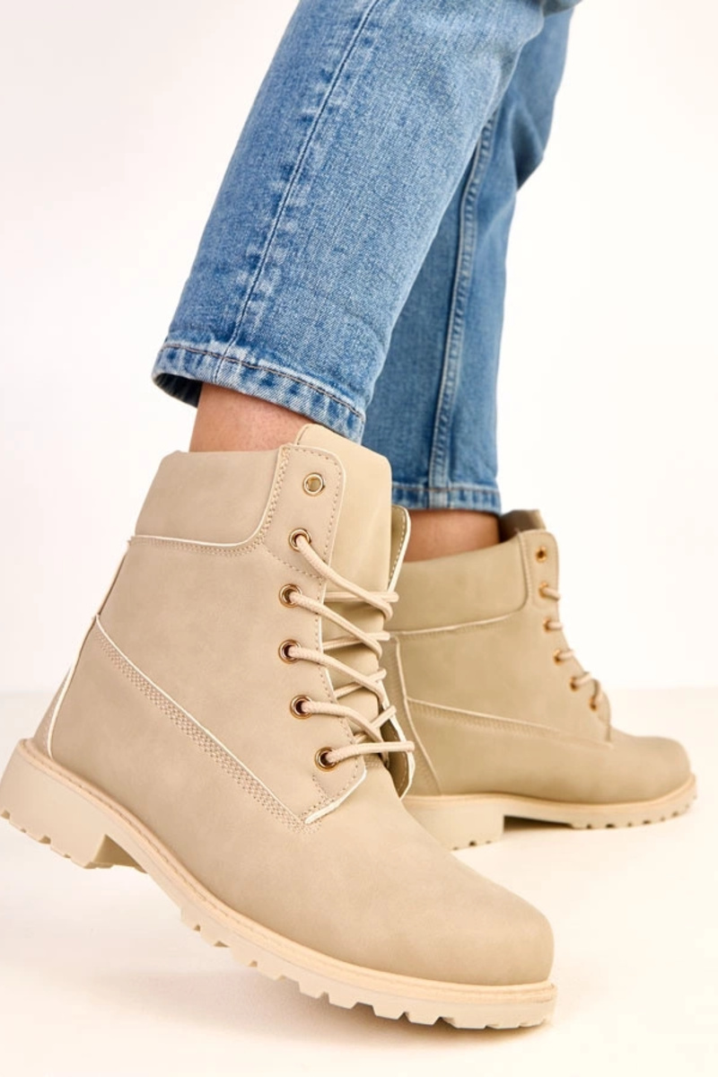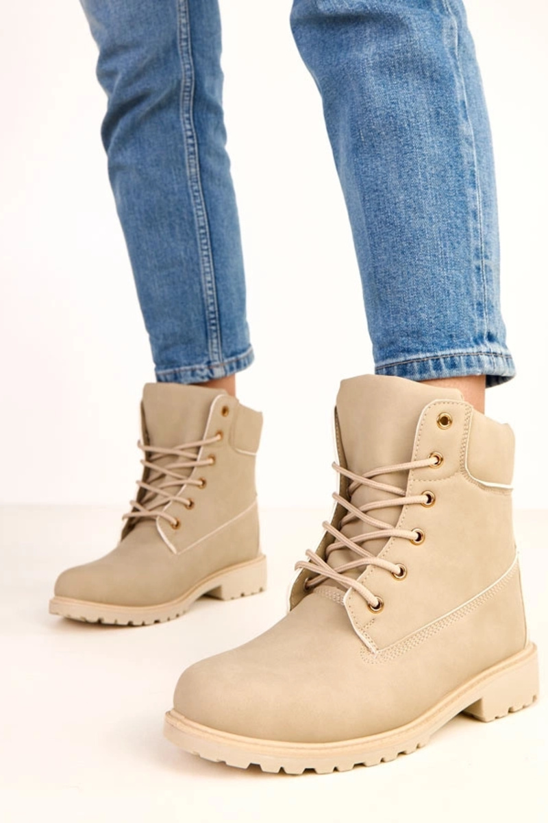 Um modelo atraente botas estilo coParaboy FemininoHabilitadoturalnego de camurçau bege...