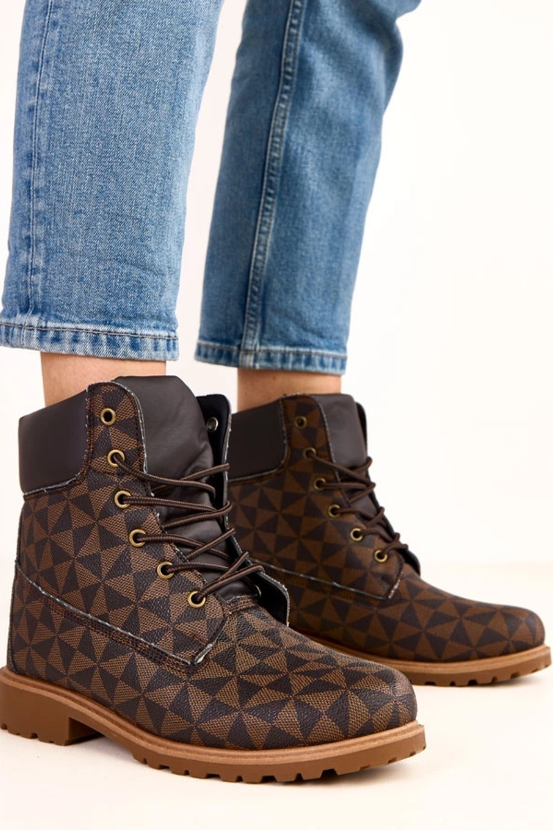 Botas de trabalho pretas e marrons com padrão geométrico Alicia