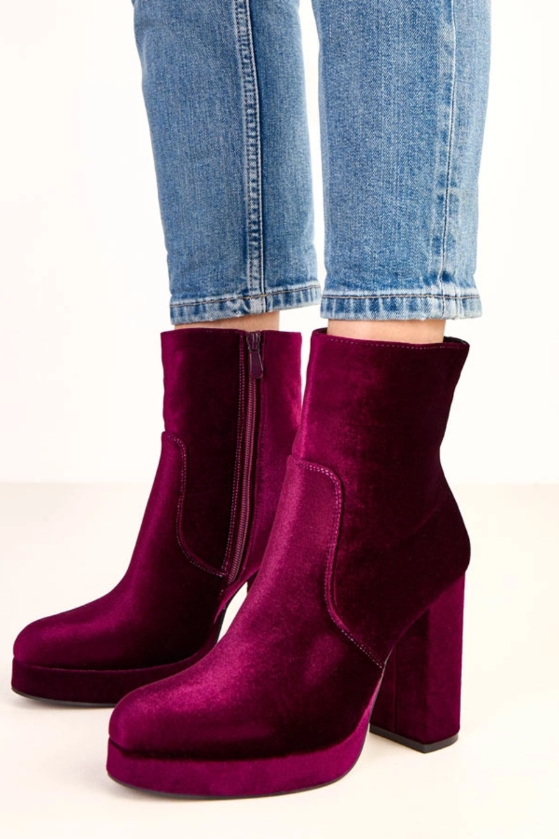 Botas de cano curto roxas em salto grosso com acabamento brilhante Asanda
