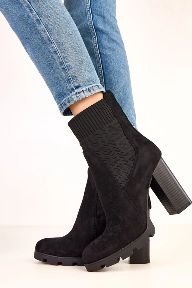 Botas de cano curto pretas em salto grosso com costura elástica Vesira