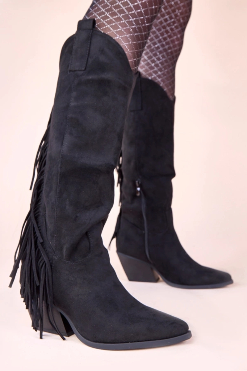 Um modelo atraente botas estilo coParaboy FemininoHabilitadoturalnego de camurçau...