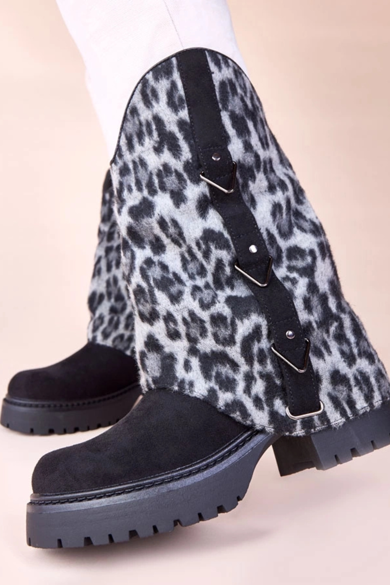 Botas de cano curto pretas com estampa de tigre Kaylia