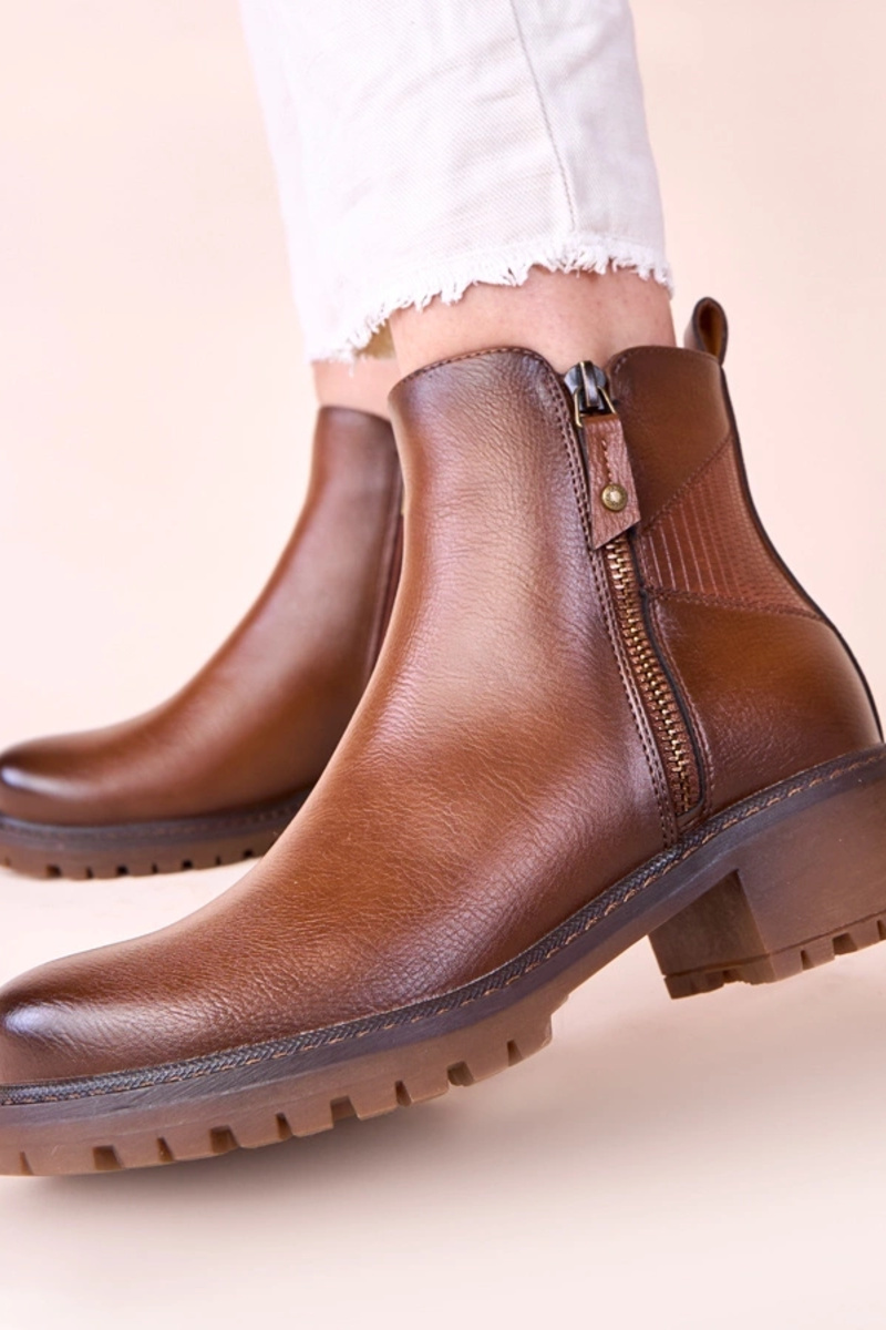 Botinhas marrons com salto fino e zíper decorativo Terina