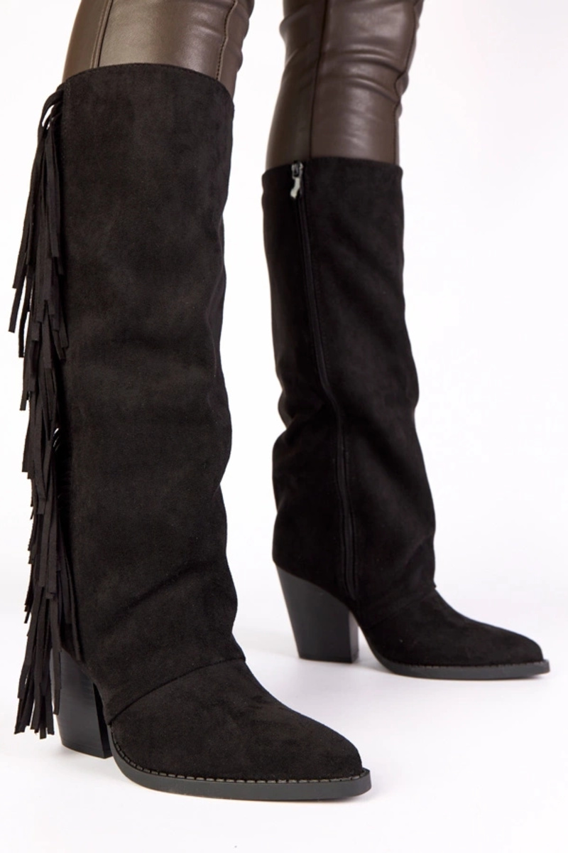 Botas de cowboy pretas decoradas com franjas Shia