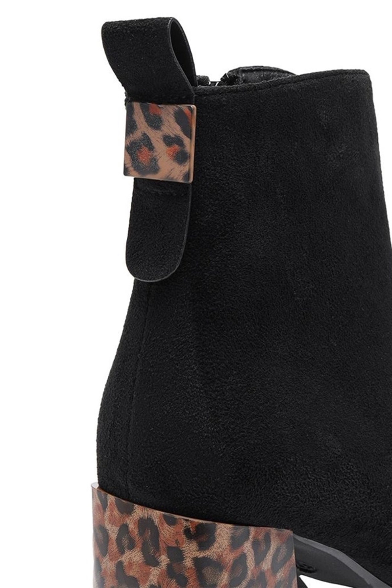 Botins pretos de salto laqueado com estampa de leopardo Gena