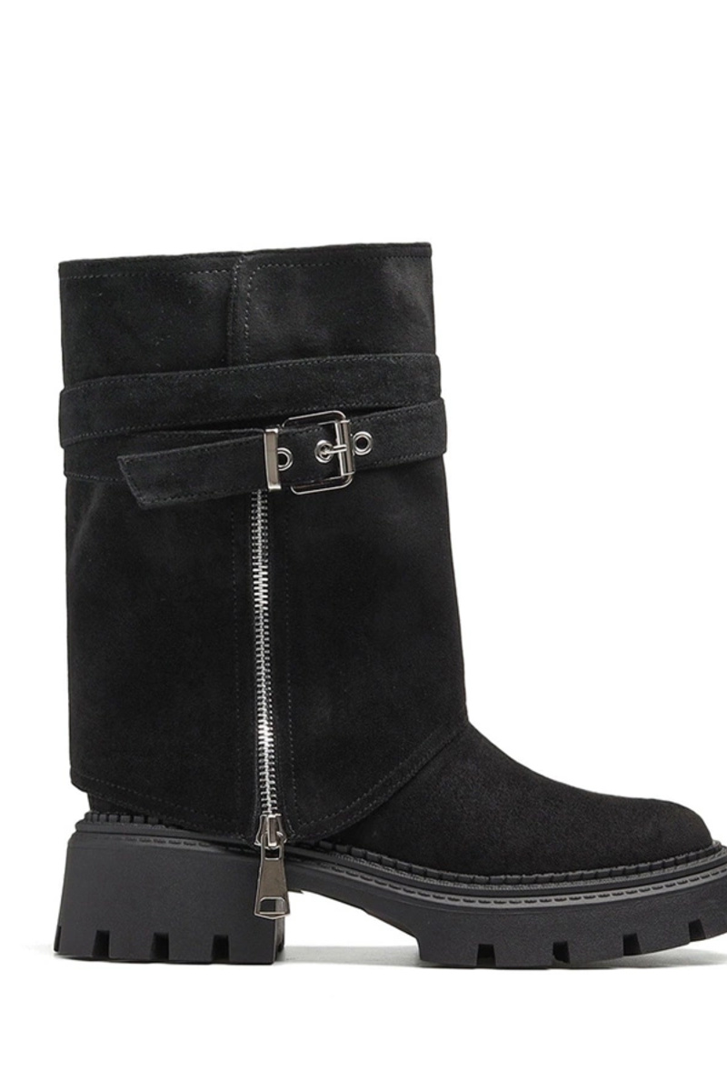 Botins pretos com cano removível e zíper decorativo Edna
