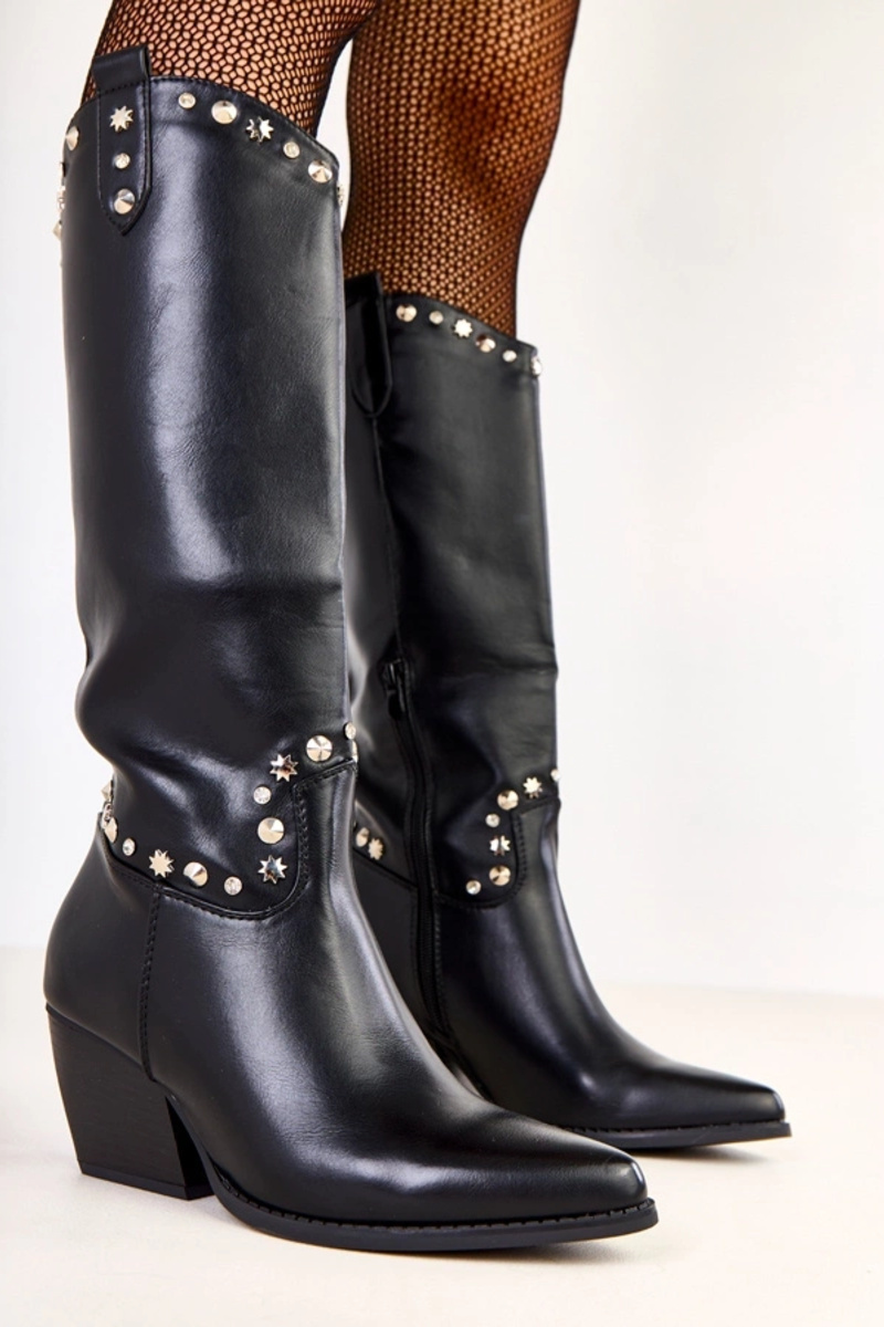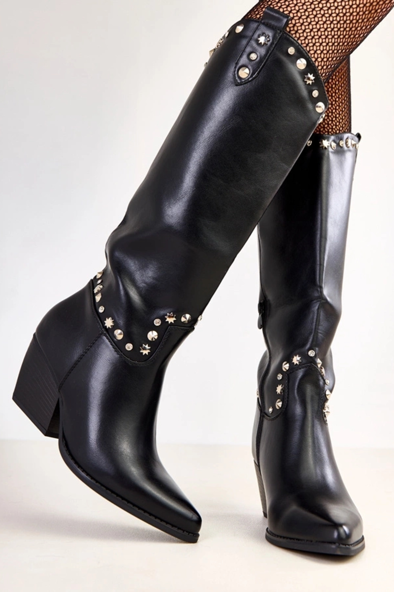 Botas femininas de cowboy pretas decoradas com brilhos Horsey