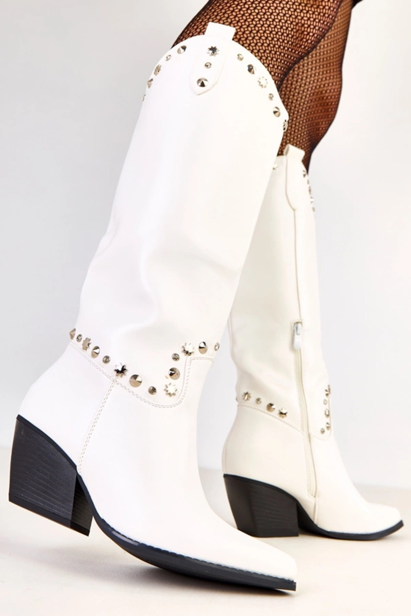 Botas femininas de cowboy brancas decoradas com brilhos Horsey