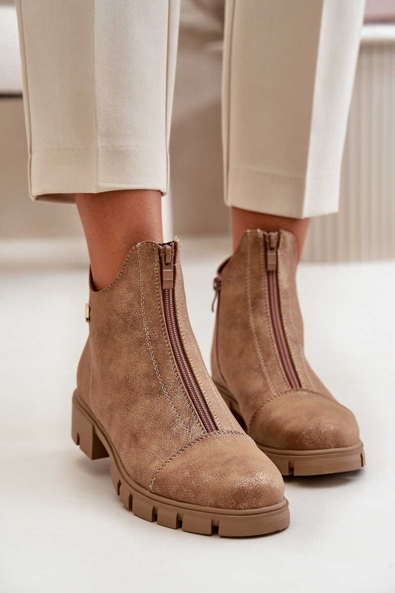 Botins femininos acolchoados de couro sintético na cor marrom-dourada Verietta