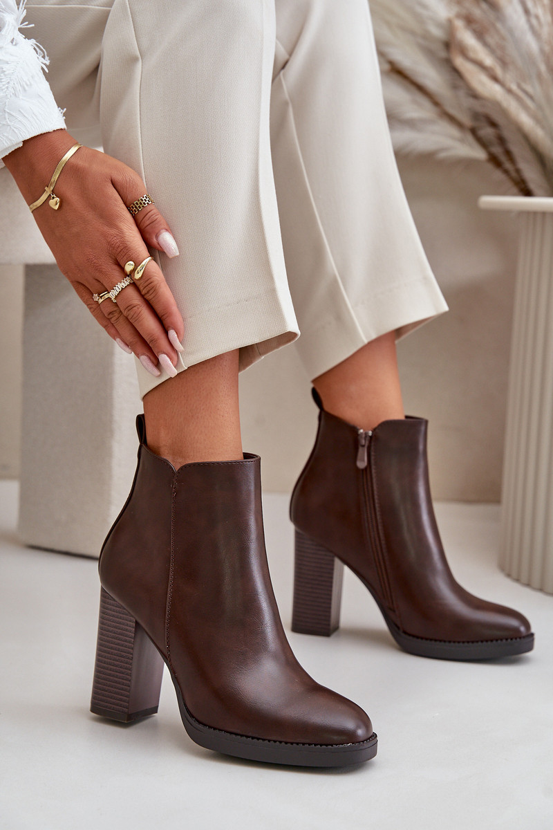 Botins femininos acolchoados de couro sintético na cor marrom escuro Teresine