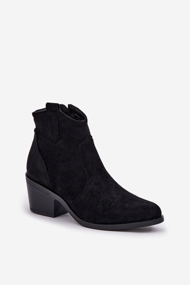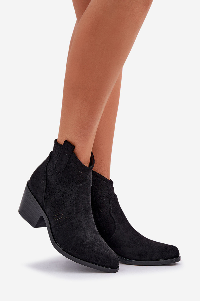 Botins estilo cowboy de camurça sintética perfurada S.Barski HY51-061 pretos