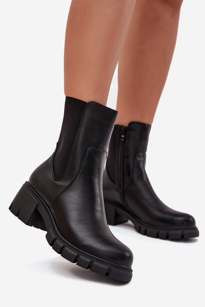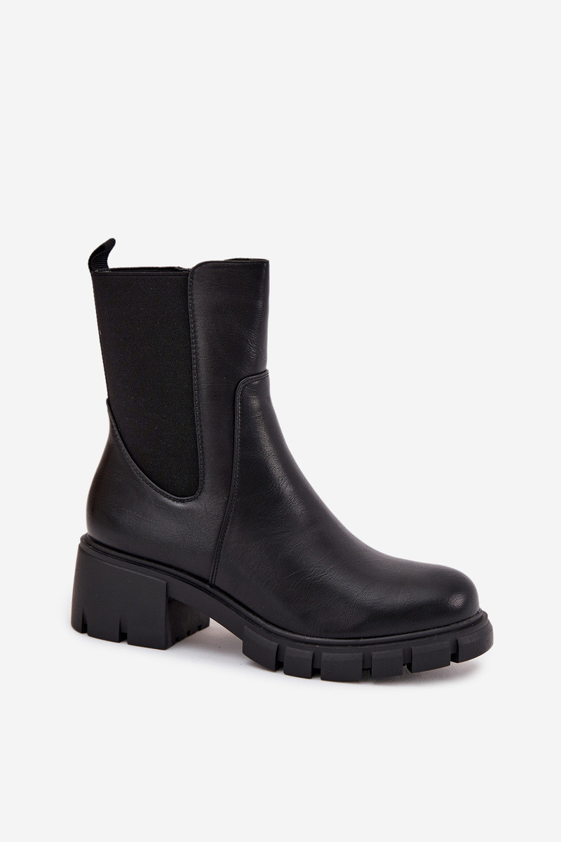 Botinhas femininas de couro sintético, na cor preta Kyra
