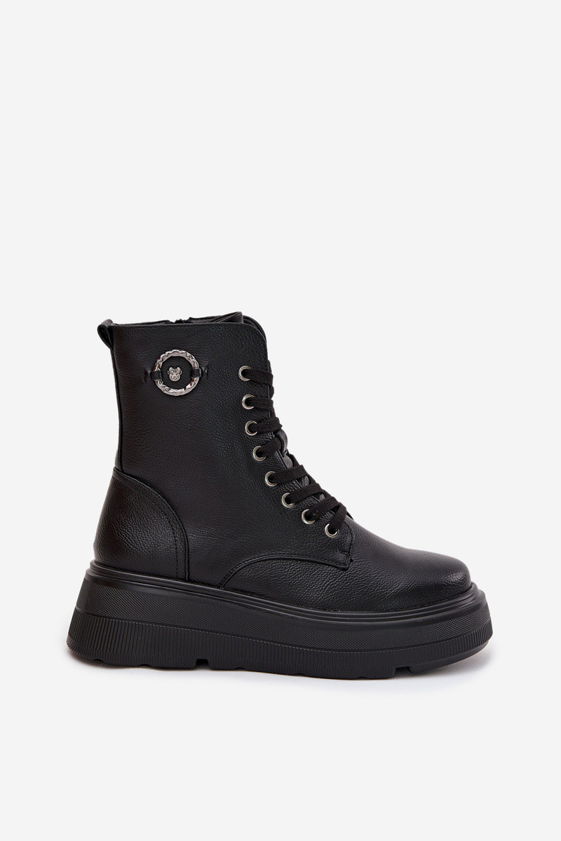 Botas de trabalho femininas de cano curto aquecidas com plataforma e detalhes adornados Vinceza 16513 na cor preta