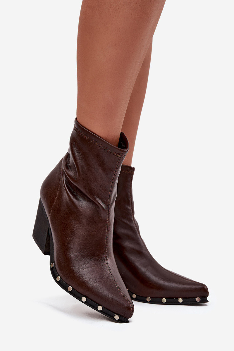 Botinhas femininas marrons de estilo cowboy, de couro sintético com saltinhos Abrielle