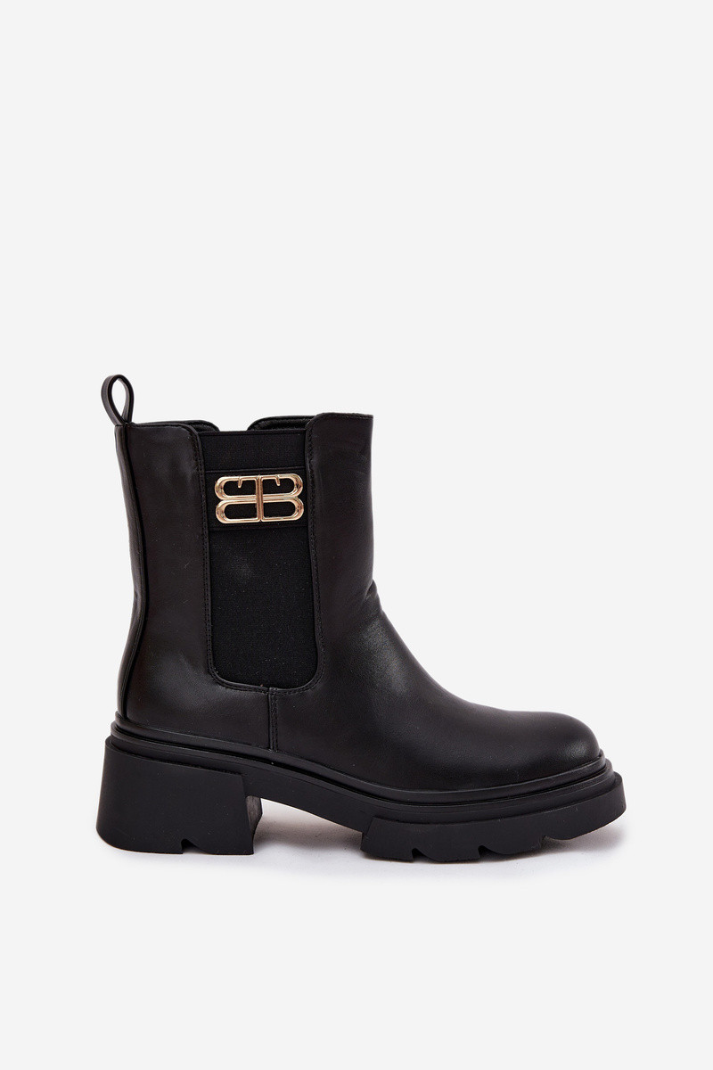 Botas femininas pretas quentes de cano curto com detalhes dourados Serene