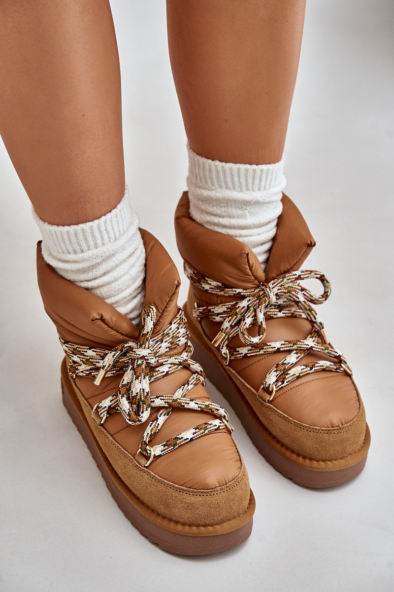 Botas de neve femininas de camurça com amarração grossa D.Franklin DFSH375003 marrom