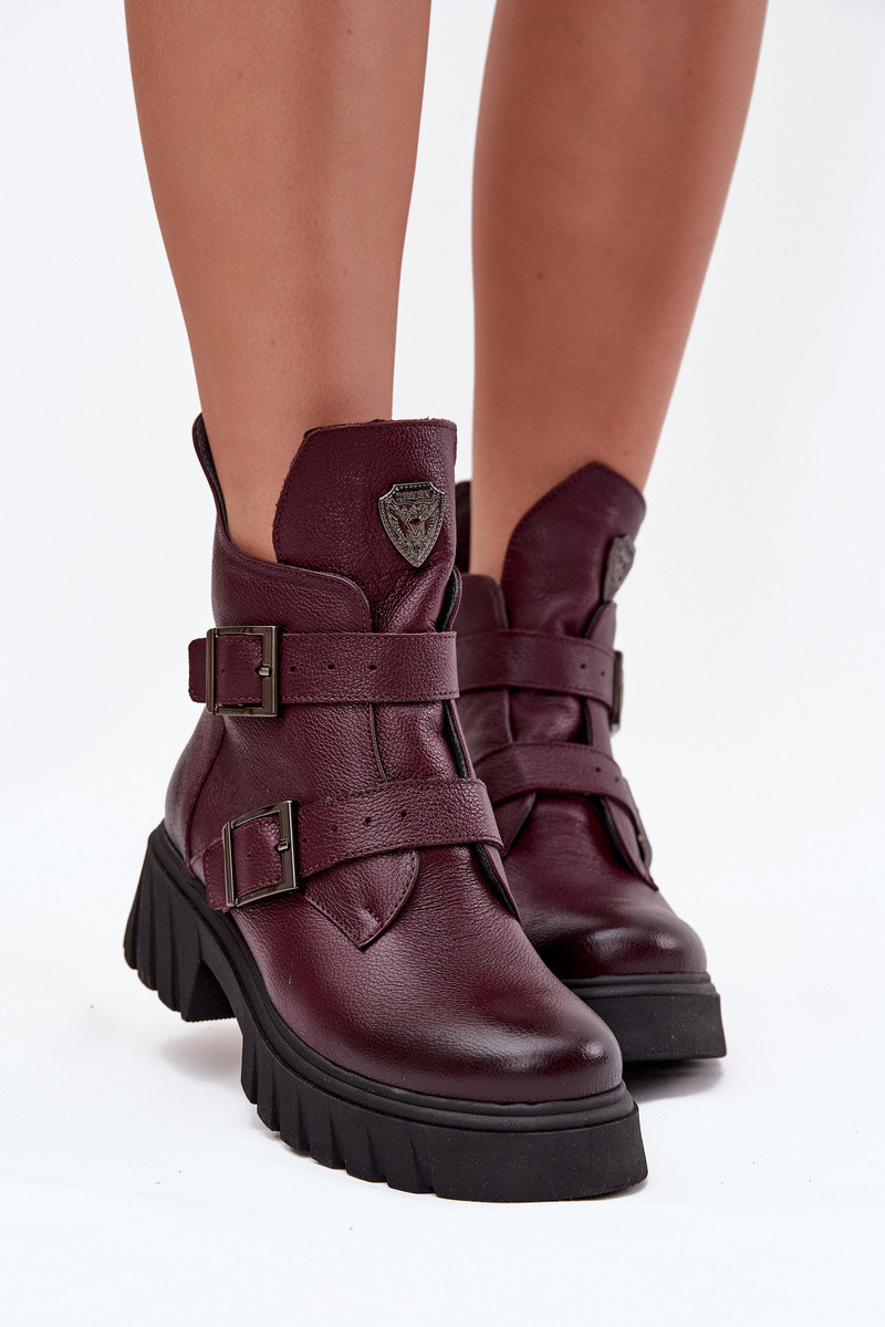 Botins de couro femininos quentes com fivelas e detalhes decorativos Zazoo 60482 bordô