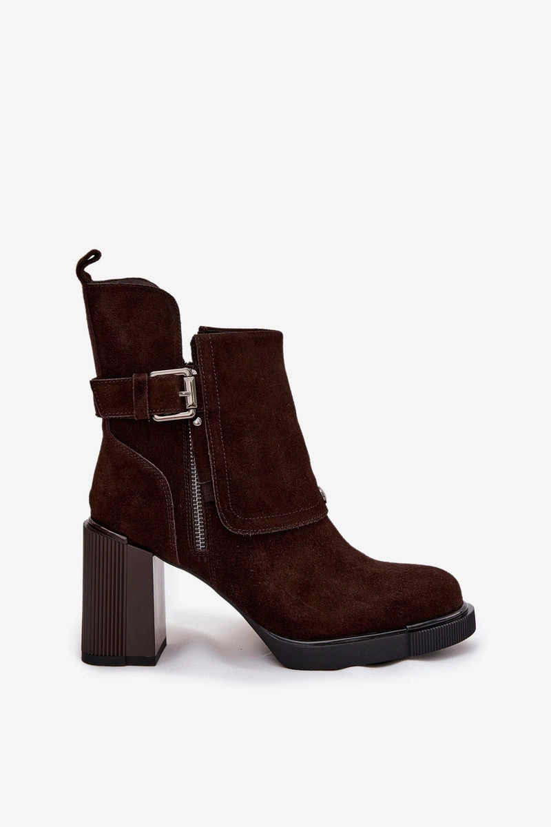 Botas de camurça natural com saltos e fivelas, Vinceza 91152, cor chocolate