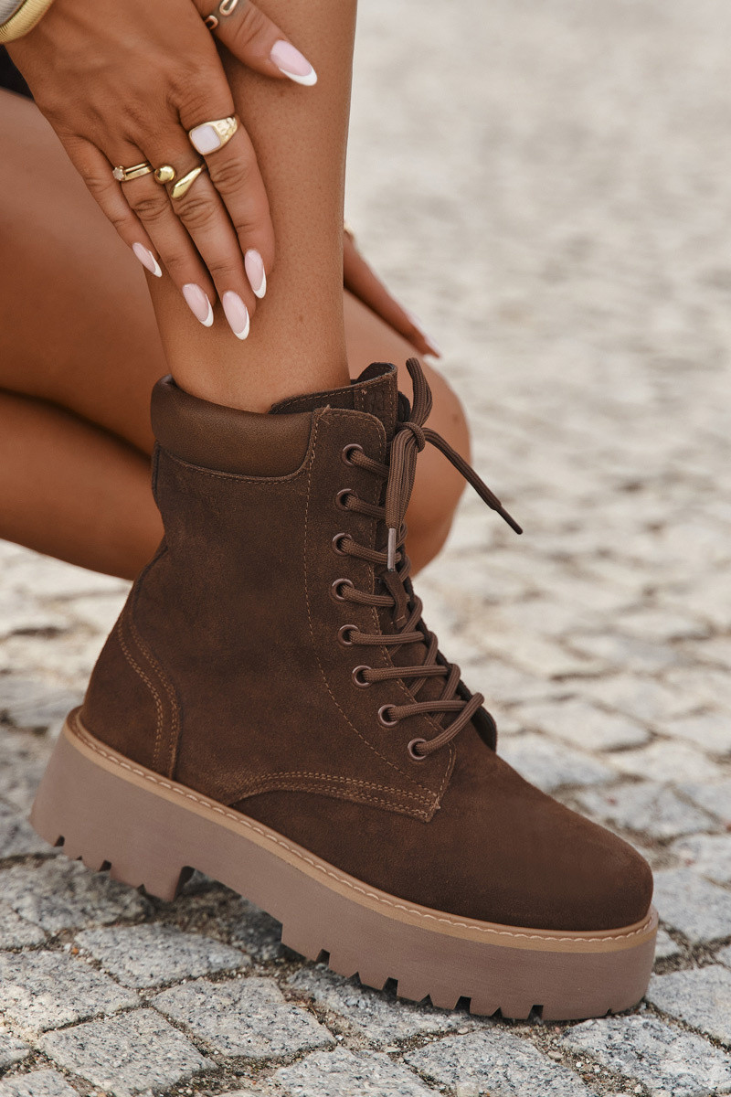 Botas femininas de camurça com cadarços Big Star SS274792 na cor marrom