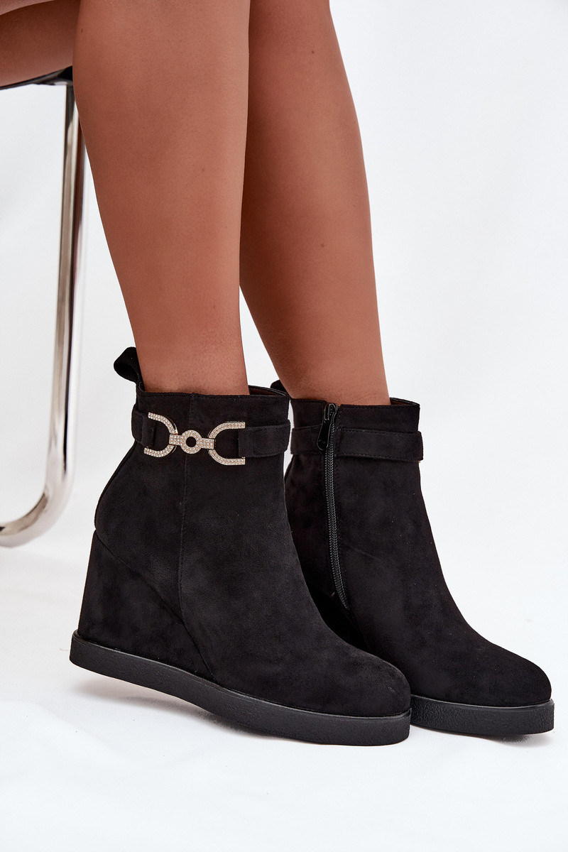 Botas femininas Em uma cunha Com decorações Detalem cor preta Tem que serrivana