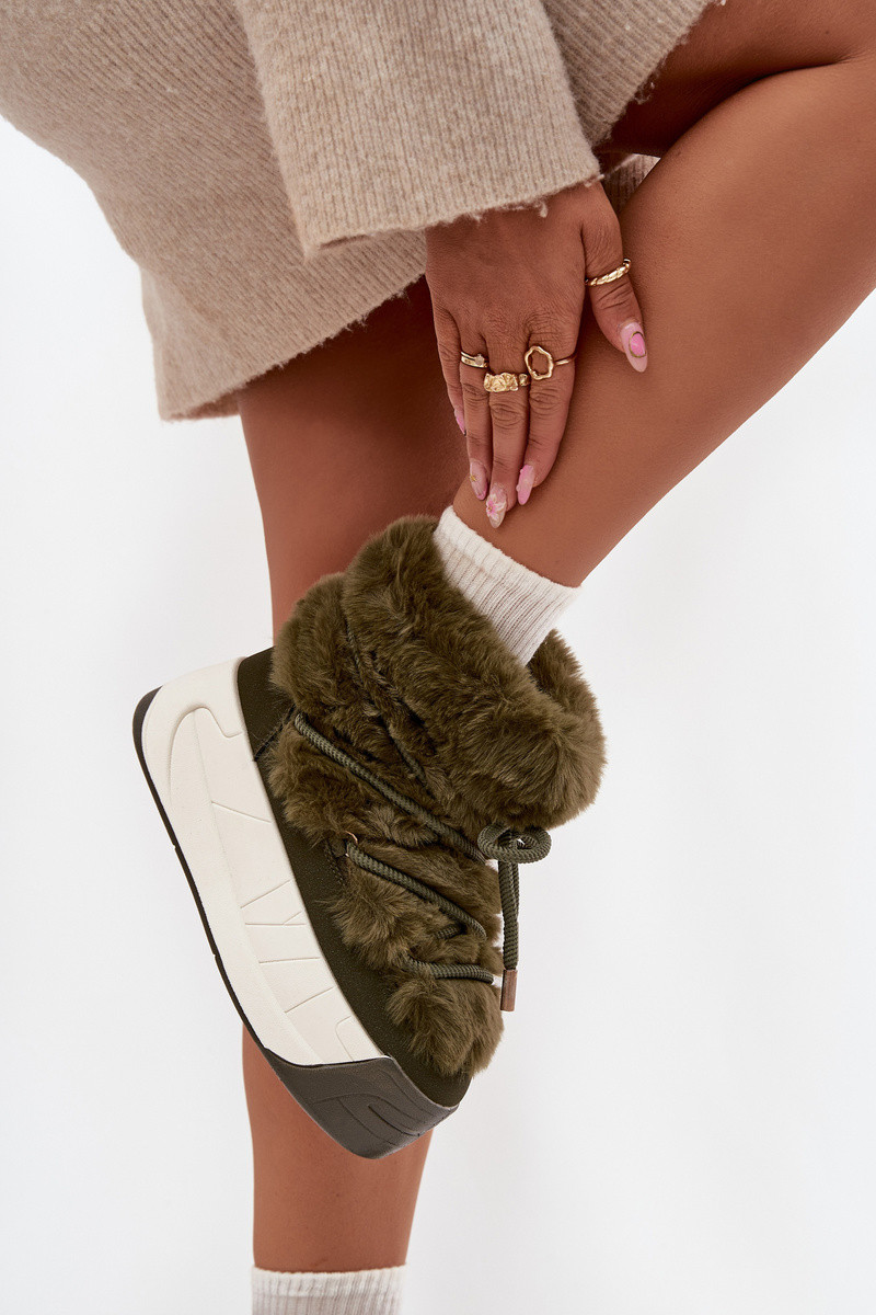 Botas de neve Feminino com uma plataforma com detalhes elegantes e um casaco de pele cor cáqui Kalivira