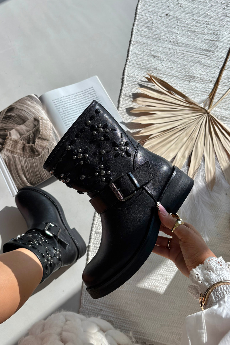 Decorado Botas femininas com fivelas cor preta Mivana