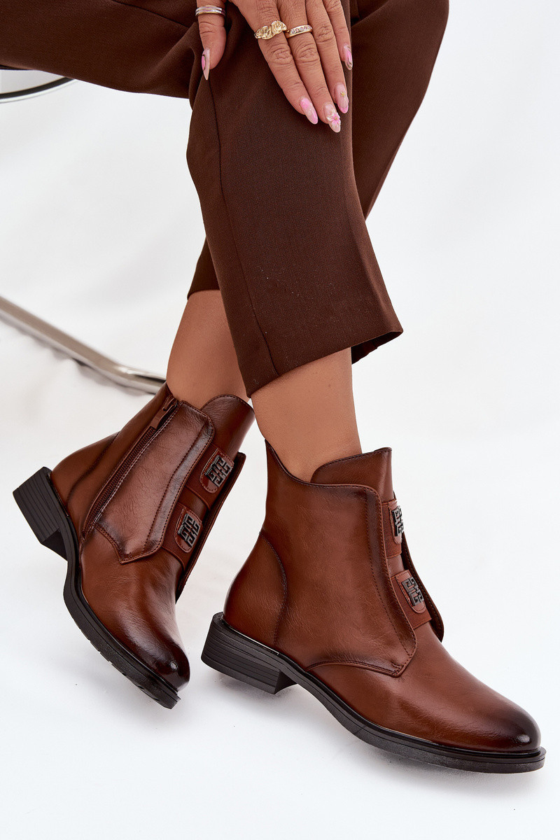 Botas femininas aquecimento De salto baixo com lindos detalhes cor marrom Tavressa