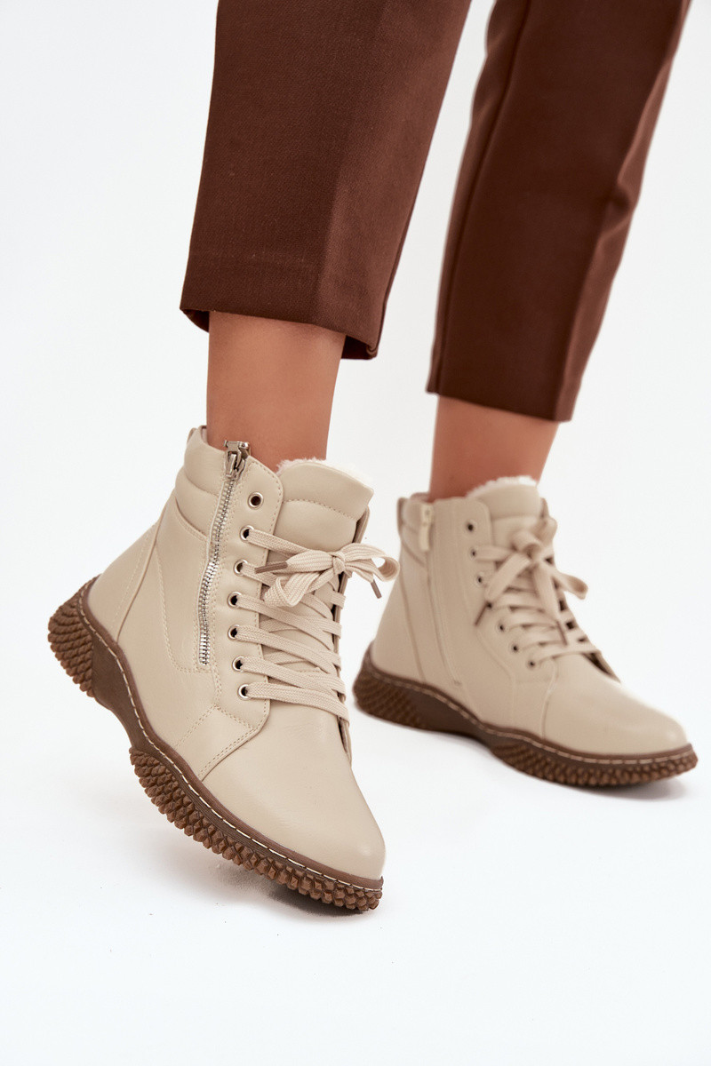 Botas femininas aquecimento com pelo por dentro de couro ecológico bege Ulverina