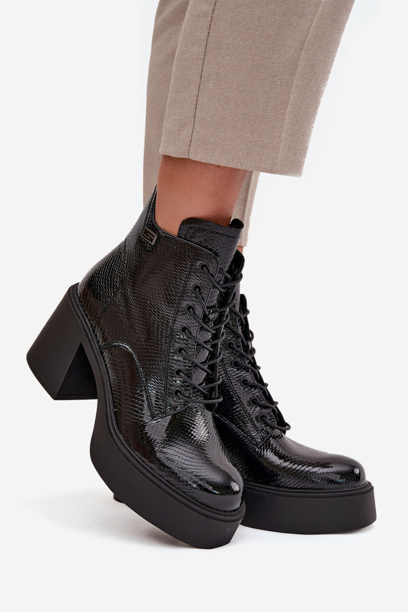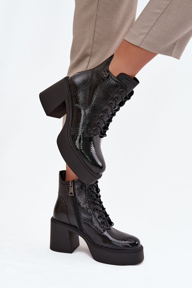 com efeito verniz Pele Botas femininas com uma plataforma I Registro Vinceza 66817 cor preta