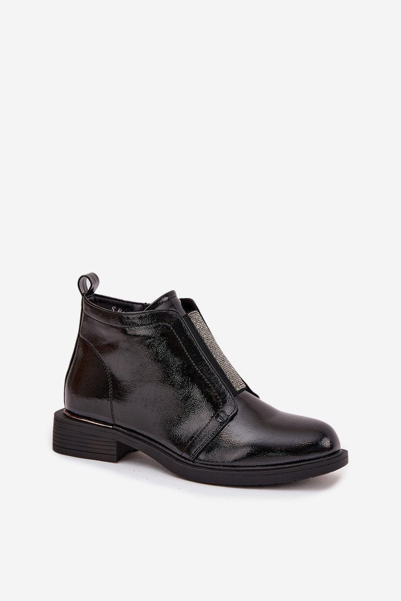 com efeito verniz aquecimento Botas femininas De salto baixo S.Barski HY52-506 cor preta