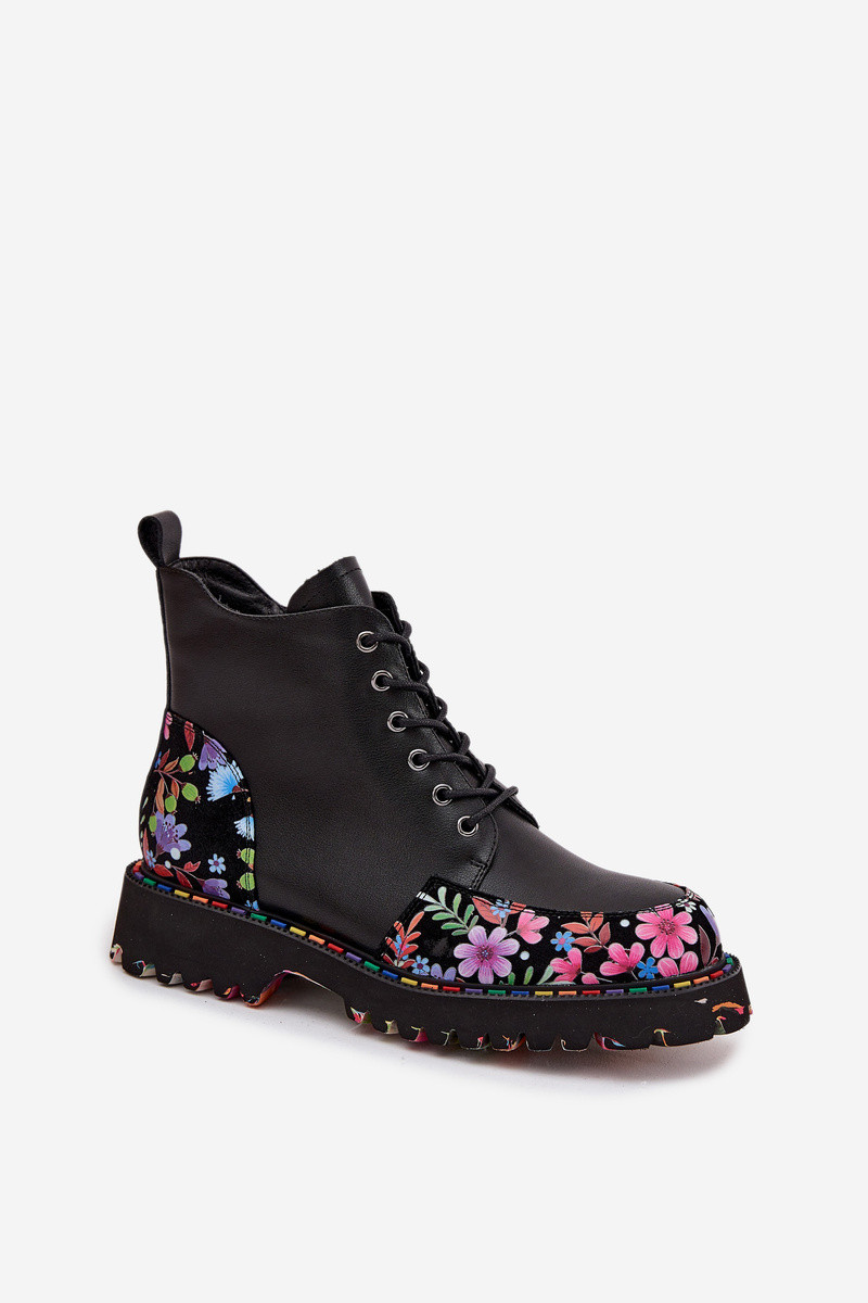Pele Botas femininas Com flores aquecimento Artiker 57C0180 cor preta